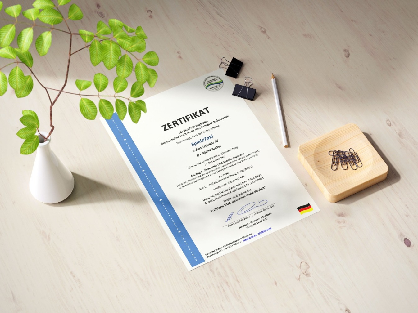 Zertifiziert in den Bereichen Ökologie, Ökonomie und Sozialkompetenz vom Deutschen Institut für Nachhaltigkeit & Ökonomie in Münster.